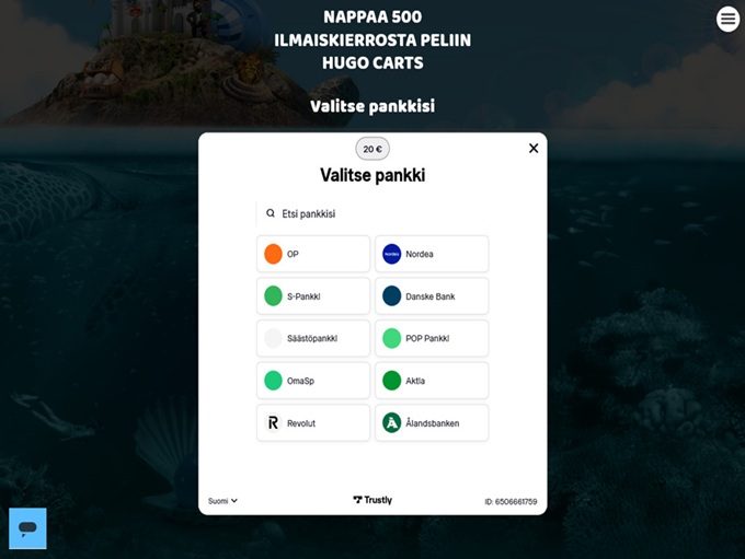 Kaikille laitteille optimoitu pelisivusto ei vaadi erikseen rekisteröitymistä, vaan pelit laitetaan käyntiin tutun Trustly Pay N Playn avulla, joka jatkaa suosittuna pikapankkimetodina suomalaisilla nettikasinoilla, sillä antaahan se mahdollisuuden turvallisiin rahansiirtoihin, nopeisiin kotiutuksiin ja jopa automaattiseen tunnistautumiseen.