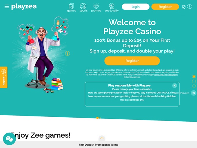 Playzee Casinolla pääset mukaan seuraamaan hauskan kemisti Zeegmundin pelisekoituksia, jotka on koottu kasaan toinen toistaan erikoisemmista pelirohdoista. Käyttäjäystävällinen värikäs sivusto tarjoaa unohtumattoman kasinokokemuksen ja suomalaiset pelaajat pääsevät nauttimaan verovapaista voitoista!
