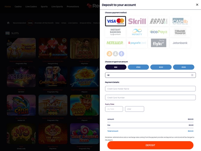- Banking: Bank Wire Transfer, Interac,JCB,MasterCard Credit, Skrill, NETELLER, Paysafecard, Visa Credit, SOFORT Banking, Payz, Trustly, Bitcoin, AstroPay Card, CASHlib, Litecoin, Nordea, Ethereum, Bitcoin Cash, Dogecoin, MuchBetter, Jeton, Ripple, Tether, Pay N Play, Rapid Transfer, TRON, MasterCard Debit, MiFinity, CashtoCode,eZeeWallet, Cardano, Solana,Toncoin+29 lisääNäytä vähemmän...
